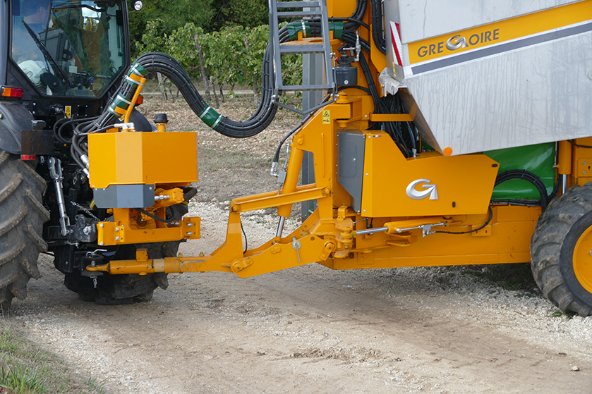 👉 Une machine à vendanger tractée capable de travailler partout.